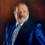 En el distinguido ámbito del arte figurativo contemporáneo, este retrato de encargo, realizado por el maestro Sergio González, se erige como una pieza de excepcional virtuosismo y resonancia histórica. La obra presenta al ingeniero Carlos Slim Helú con una ejecución técnica impecable, donde el tratamiento de la luz define la volumetría del rostro con una suavidad magistral, esculpiendo los rasgos de la edad y la experiencia sin caer en el artificio. La iluminación incide de manera lateral, resaltando la nobleza de la frente y la textura de la barba cana, otorgando a la figura una tridimensionalidad que parece desafiar la planitud del lienzo y establecer una presencia viva ante el espectador.