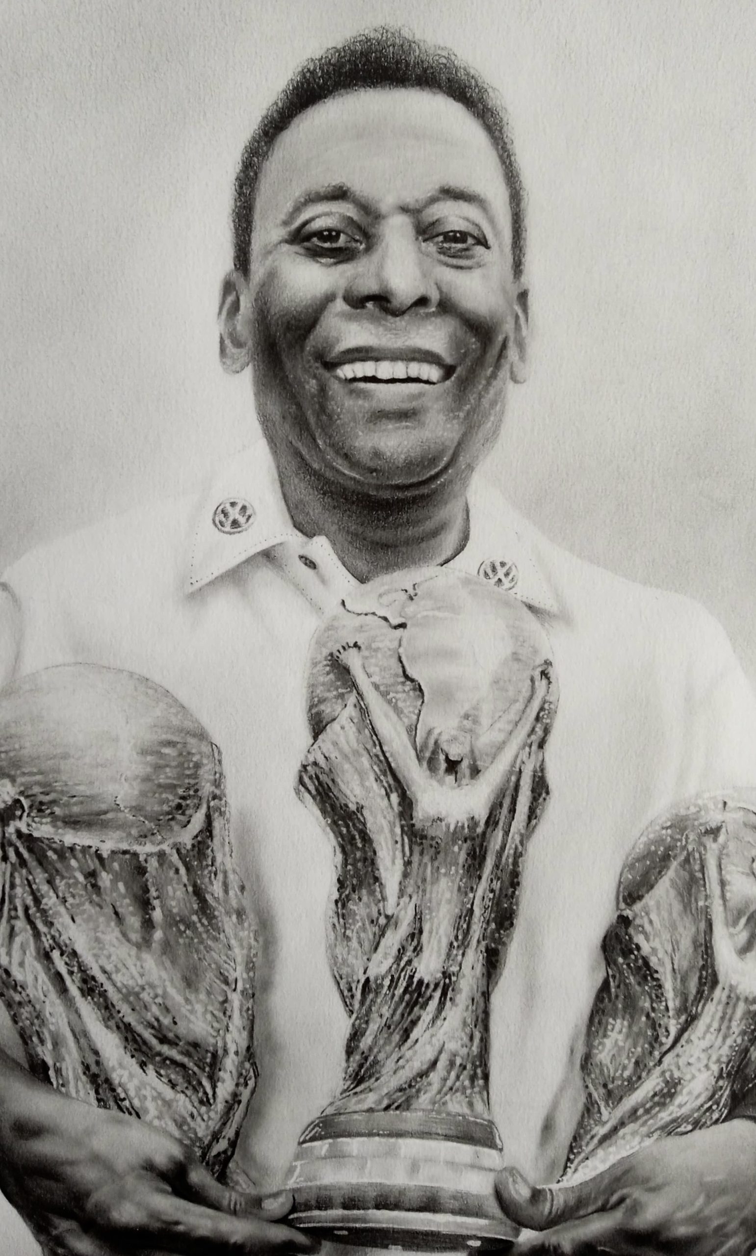 Para concluir, esta obra reafirma la maestría artística de Sergio Gonzalez y se consolida como una pieza de un valor estético e histórico incalculable. Al inmortalizar a Pelé en su condición de tricampeón, el artista nos lega un testimonio visual que honra la tradición del retrato clásico mientras se asienta firmemente en la sensibilidad contemporánea. Es, en definitiva, una celebración de la vida y el legado de una figura universal, resuelta con una elegancia y una sobriedad que solo un experto en el lenguaje del dibujo puede alcanzar, asegurando que esta visión de «El Rey» perdure como un referente de dignidad y maestría técnica.
